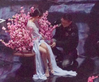 當(dāng)晚,楊冪作為表演嘉賓受邀出席晚會(huì),她一身仙氣長裙,仿佛天外飛仙從舞臺(tái)上空緩緩降落,飄逸身形仙氣十足。在秀了一番驚艷的出場之后楊冪坐在秋千上,飄逸裙擺拖地,或工作人員細(xì)心幫忙整理,她一臉微笑的向工作人員致謝,一雙美腿光潔性感,誘人眼球。